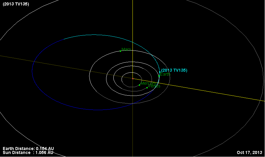 Nas últimas semanas, os estudos acerca do 2013 TV135 foram compartilhados com cientistas ao redor do mundo, o que resultou em uma modificação no cálculo de sua probabilidade de impacto, estimado anteriormente de 1 em 63 mil para 1 em 14 mil, segundo divulgado pela NASA. Ou seja, o asteróide que poderá ser visto com telescópios a partir do final de 2013 tem 0.03 por cento de chance de colidir com a Terra. Vale mencionar que este número continuará a ser atualizado à medida que novas observações sejam feitas.